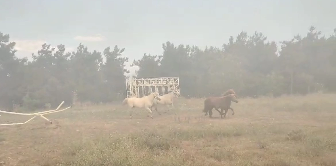 Yangında birçok hayvan telef olurken, çiftlikteki atların kurtarılma görüntüsü anbean kameralara yansıdı.
