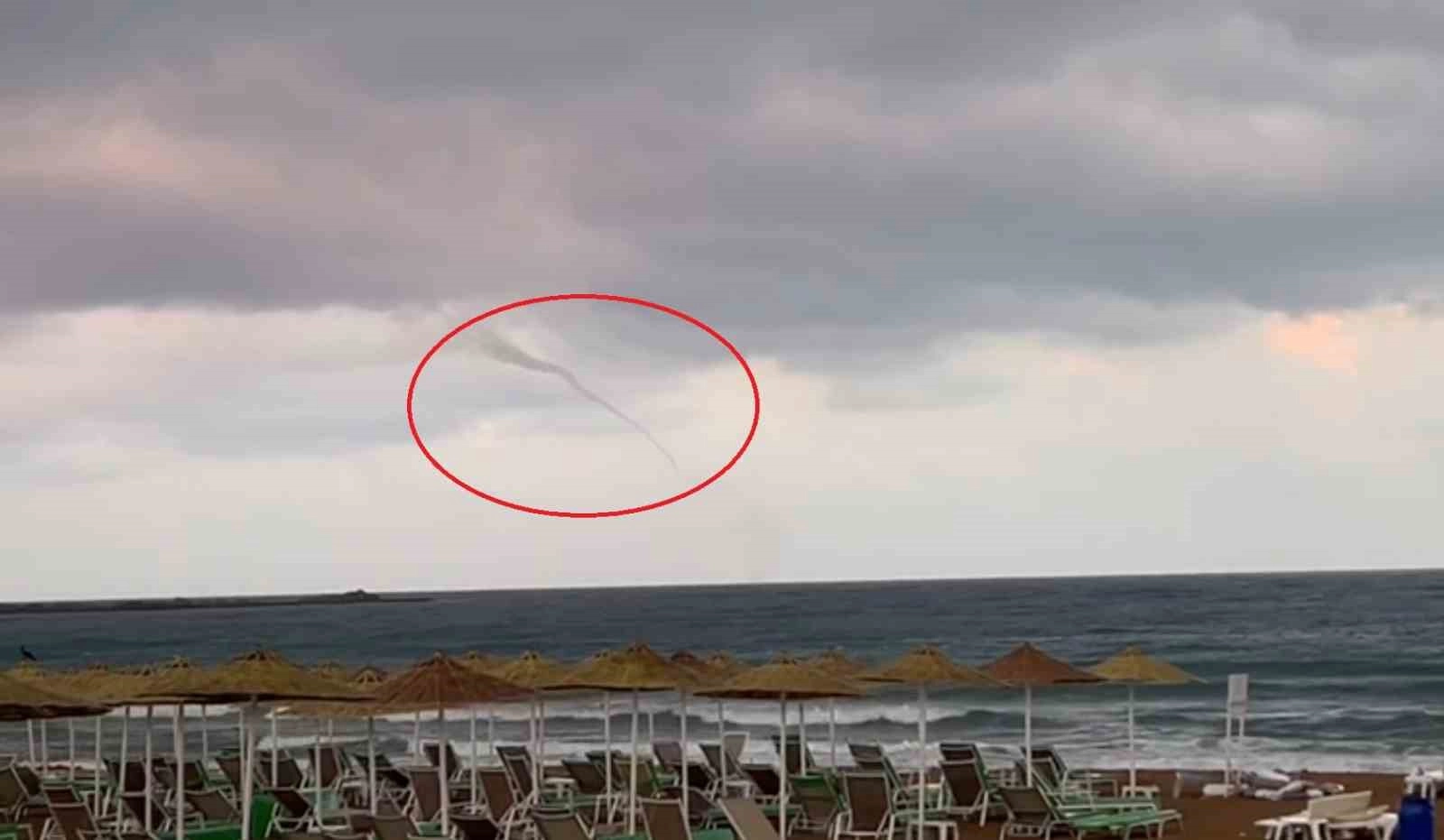 O an bazı vatandaşlar deniz keyfi yapmaya devam ederken, kıyıya oldukça uzak noktada çıkan hortumlardan birinin ise etkisini saniyeler içinde kaybetmesi görüntülere yansıdı.