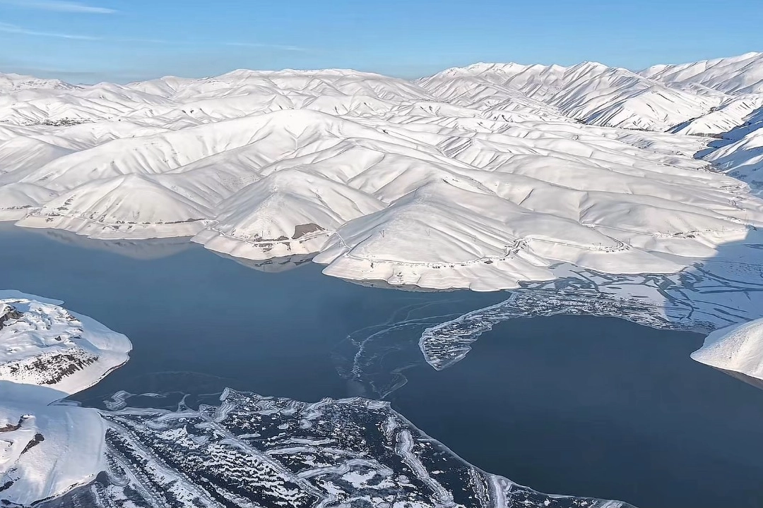 Hakkari'nin Yüksekova ilçesinde hava sıcaklığının sıfırın altına düşmesiyle Dilimli Barajı'nın yüzeyi kısmen buzla kaplandı.