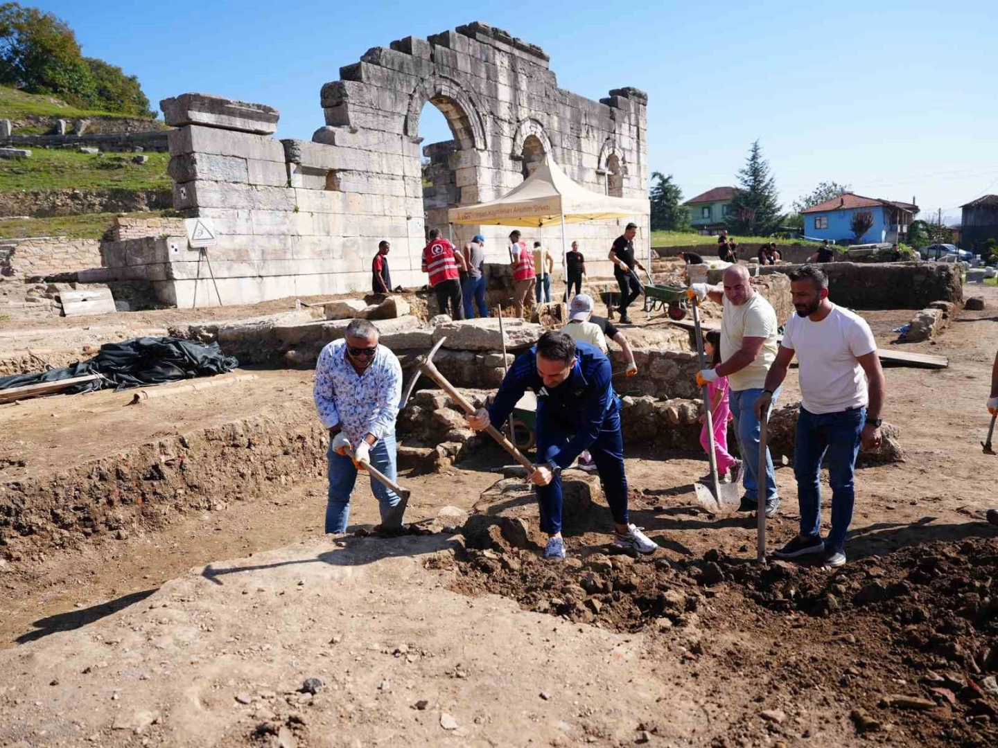 Düzce Belediyesi birimlerinin hafta sonları dönüşümlü olarak katıldığı kazı çalışmalarına bu kez İtfaiye Müdürlüğü destek verdi. İtfaiyesi personelleri, bölgenin tarihi mirasını koruma ve gün yüzüne çıkarma çalışmalarına katkı sunmak amacıyla Konuralp Antik Kenti kazılarına katıldı. İtfaiye ekibi ile birlikte, Başkan Yardımcısı Burak Coşkun da antik tiyatronun giriş kısmında devam eden kazı çalışmalarında yardımcı oldu.