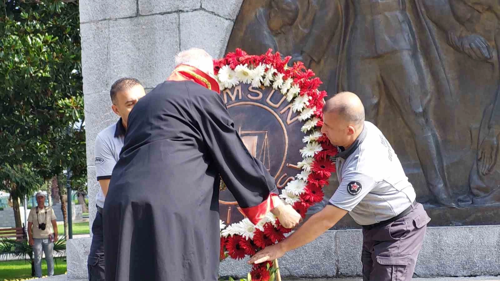 Törende, Samsun Cumhuriyet Başsavcılığı adına Samsun Cumhuriyet Başsavcı Vekili Turgut Türkmen, Bölge Adliye Mahkemesi Başkanlığı adına Cumhuriyet Başsavcısı Fahri Gülay, Bölge İdare Mahkemesi Başkanlığı adına Bölge İdare Mahkemesi Başkanı İshak Sağır, Samsun Barosu adına Baro Başkanı Av. Pınar Gürsel Yıldıran, Noterler Odası adına da Samsun Noter Odası Başkanı Türkay Tezir, çelengi anıta sundu.