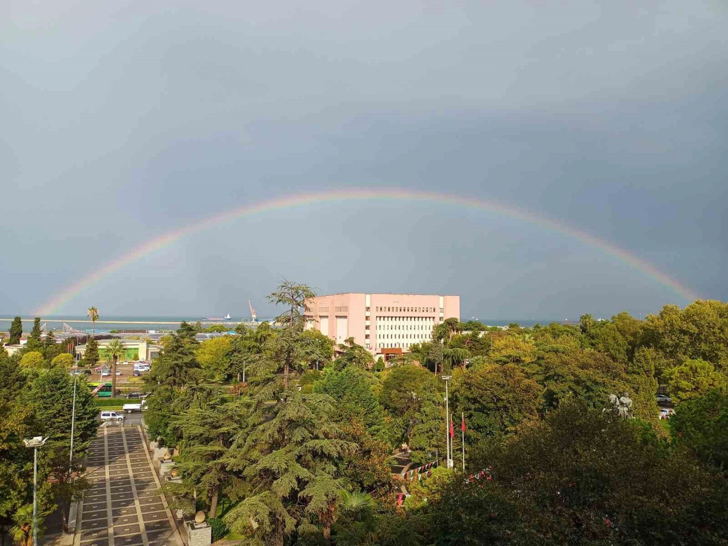 Yağan yağmur sonrası güneşin yüzünü göstermesiyle birlikte gökyüzünde renk cümbüşü yaşandı. Samsun Valiliği Binası üzerinde, deniz tarafında gökkuşağı ortaya çıktı. Valilik üzerinde kubbe gibi duran ve çok net görülen gökkuşağı, vatandaşların ilgisini çekti. Rengarenk gökkuşağı doyumsuz bir görüntü ortaya çıkardı. Vatandaşlar ise yağmur sonrası çıkan gökkuşağını cep telefonu kameraları ile kaydetti.