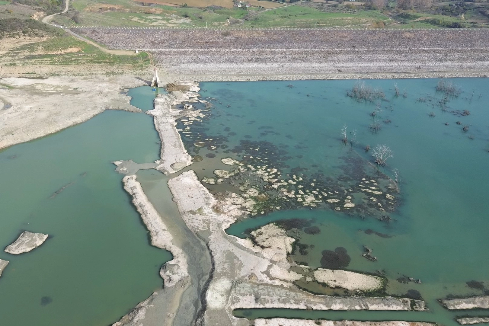 Tekirdağ'ın Süleymanpaşa ilçesine içme suyu sağlayan Naip Barajı'nda yaklaşık 20 günlük su kaldı. Su seviyesinin düştüğü barajde ağaçlar ve eski yapılar gün yüzüne çıkarken, barajın son durumu dronla havadan görüntülendi. Tekirdağ'ın Süleymanpaşa ilçesindeki Naip Barajı'nda su seviyesi kritik seviyeye ulaştı. Barajda kalan su miktarı neredeyse yok denecek kadar azalınca yıllardır su altında bulunan yapılar ve ağaçlar gün yüzüne çıktı. Kış mevsimi yaklaşmasına rağmen yağışların yetersiz kalması, Süleymanpaşa'yı su stresi yaşayan bölge konumuna getirdi. Kentte yüzey suyu kaynaklarının alarm vermesi, su yönetimi açısından endişeleri artırdı. "Su kesintileri uygulamak zorunda kalacağız" Konuyla ilgili açıklamalarda bulunan Tekirdağ Su ve Kanalizasyon İdaresi (TESKİ) Genel Müdürü Mehmet Ali Şişmanlar, "Tekirdağ'da Süleymanpaşa ilçemize su sağlayan Naip Barajı ve Yazır Göleti'nde su seviyeleri ölü hacmin altında. Son güncel verilere göre DSİ'den aldığımız bilgilere göre Naip Barajı'nda ölü hacimde yaklaşık 20 günlük suyumuz kaldı. Yazır Göleti'nde de ölü hacmin su alma yapısının altına düştüğümüz tespit edildi. Yaklaşık 350 bin metreküp civarında bir su kaldığı DSİ tarafından bize iletildi. Buna bağlı olarak biz buradan aldığımız suları en minimum seviyede tutuyoruz. Yüzey sularından beslenen mahallelerimizde sıkıntı yaşanmasın diye diğer yeraltı sularından sağladığımız bölgelerden takviye ederek bu 20 günlük süreyi uzatmaya çalışıyoruz. Ancak eğer yağışlar olmazsa, bu koşullar devam ederse ve yüzey suyu alamazsak şehirde su kesintileri, planlı su kesintileri uygulamak zorunda kalacağız. Bu kaçınılmaz bir yol gözüküyor. Bunun kısa vadeli olması için diğer su kaynaklarımızı artırmak ve iletim hatlarını yenilemek anlamında proje çalışmalarımız çok hızlı bir şekilde tamamlanıyor. Hizmet alım yöntemiyle ihale ederek, bu hatların kapasitelerini büyüterek şehrimize su vermek için elimizden geleni 7/24 yapmaya çalışıyoruz. Şu an bu barajı kullanamıyoruz. Burada su bitti dediğimiz gölet, baraj şu anda Marmaraereğlisi bölgesinde yazın kısmi bazı mahallelerde su sıkıntısı yaşadığımız yerdi. Basında da görüldü, Türkmenli Göleti'nde hiç su yok. Şu anda Türkmenli Göleti'ni hiç kullanamadık. Ama bunlarla ilgili eğer bu kış sezonunda yağış ve kar gelirse ve su birikimi olursa DSİ ve ilgili birimlerle yazışmalarımız devam ediyor. İl Su Kuraklık Komisyonu'nun tekrar toplanmasıyla ilgili talebimiz var. Çalışmalarımız devam ediyor. Öncelikli olarak şehre içme ve kullanma amaçlı suyun verilmesi, sulu tarımın en minimuma indirilmesi yönünde taleplerimiz ve görüşmelerimiz var. Ancak önemli projelerimizden biri de hemen yanı başımızda bulunan Çokal Barajı'nda yüzde 53 doluluk olması. DSİ'den aldığımız bilgilere göre yaklaşık 100 milyon metreküpün üzerinde bir su hacmi var. Bununla ilgili de proje çalışmamızı başlattık. Ama tabii bu biraz uzun sürecek bir proje. Öngörümüz 1-1.5 yıl içerisinde 1.5-2 milyarlık bir yatırımla o suyu Süleymanpaşa'ya kazandırmaya çalışıyoruz, ki önümüzdeki yıllarda bu sorunları yaşamayalım" dedi.
