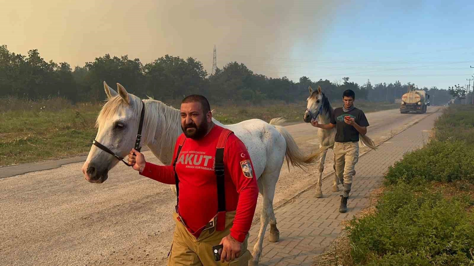 AKUT ve Asayiş Şube Müdürlüğü HAYDİ ekipleri de alevlerden iki at ve bir kaplumbağayı kurtardı.