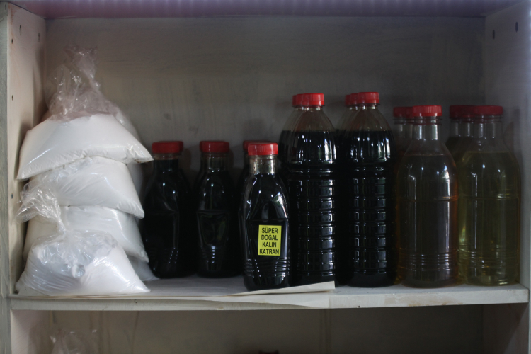 Sedir katranının küçük bir şişede 200 liraya satıldığını söyleyen Tevfik Ünalacak, "Hayvanlar ve insanlar için çam katranı var ağrılarında sızılarında kullanılır. Onun da 1 kilosu 200 lira. Böyle bir farkı var. Sedir ağacının çok niteliği vardır, kıymetli bir ağaçtır. Miras kalır atalarından evlatlarına. Biz de onları ikna ederiz. Bize sedir katranlarını temin etmeleri için. Biz de burada insanlara bunları sunarız. 100 yıldır yapılan bir iş. Dedemden beri gelir. Babamdan devir aldım. İnsanlara faydalı olan ürünleri de arttırıyorum. Kantaron yağı, Hint yağı var. En çok talep gören orijinal lavanta yağı var. Böyle yağlarımız var. Bu hususta dükkanımızı ziyaret edenlere yardımcı oluyoruz" diye konuştu.