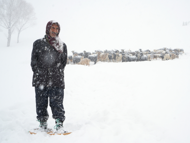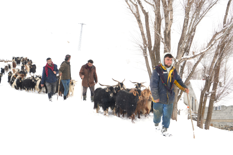 Muş'ta etkisini sürdüren yoğun kar yağışı ve tipi, özellikle yüksek rakımlı bölgelerde hayvancılıkla geçimini sağlayan üreticilerin yaşamını olumsuz etkiliyor. Merkeze 56 kilometre uzaklıkta, bin 800 rakımda bulunan Yukarıyongalı köyüne bağlı Behçet mezrasındaki keçi sürüsünün, yemlerin tükenmesi üzerine köye geri getirildi.